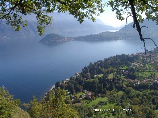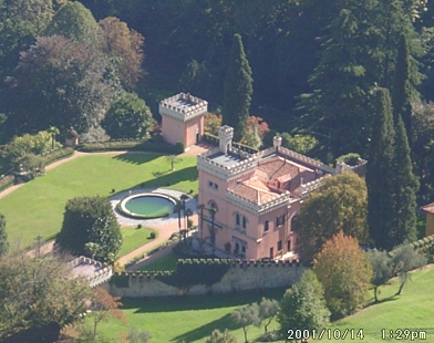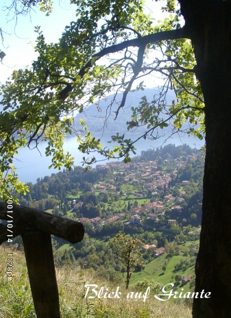 Rechts von unserem Panoramasitz liegt in der Tiefe Griante, an dessem äußeren Ortsrand wir ein traumhaft schönes Anwesen entdecken – ein schlossähnliches Herrenhaus in einem riesigen Park. Ein großer, kreisrunder Swimmingpool fehlt auch nicht. Wer mag da wohl sein bescheidenes Feriendomizil haben? Mir kommt das Lied von Reinhard Mey in den Sinn – „Manchmal da fallen mir Bilder ein...“, und ich denke bei mir: Du hast zwar keinen Palast wie diesen, aber es geht Dir finanziell viel besser als der Mehrzahl der Menschen auf dieser Welt. So relativiert sich letzten Endes alles, wenn man ernsthaft darüber nachdenkt.