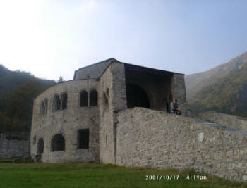 Wir fahren weiter nach Civate, das ebenfalls eine geschäftige Industriestadt ist. Von dort wollen wir zur Wallfahrtskirche San Pietro al Monte wandern. Nach unserer Wanderbeschreibung suchen wir einen Parkplatz für unseren Hiram und geraten mitten in den am Hang gelegenen alten Ortskern, der zwar nett anzusehen, aber schlecht zu durchqueren ist, weil unser Hiram wohl zu dick ist. Wir entschließen uns, ihn etwas unterhalb am Stadion abzustellen.