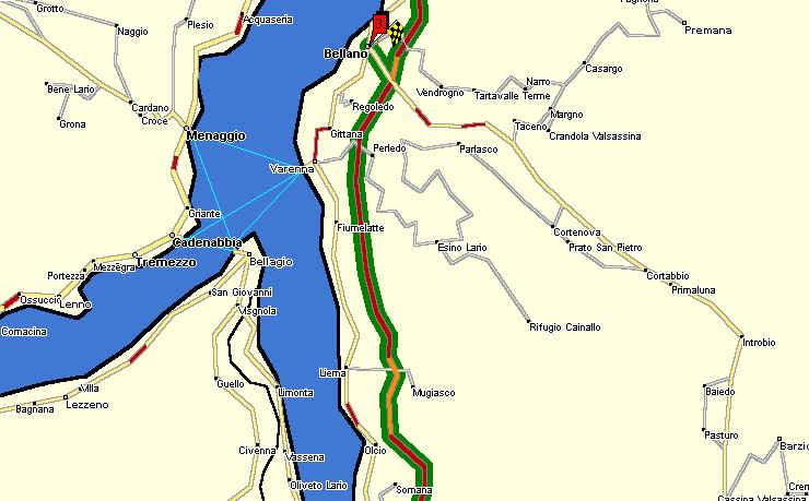 Obwohl wir ziemlich geschafft sind, ist für uns klar, dass wir noch weiterfahren, denn Civate ist mit Sicherheit kein schöner Ort für eine Übernachtung. Unser nächstes Ziel ist Bellagio, und so entscheiden wir uns, erst einmal in diese Richtung zu fahren und unterwegs nach einem Übernachtungsplatz Ausschau zu halten.