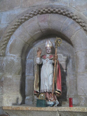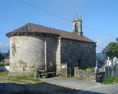 Vilar de Donas - Die Kirche gilt als das wichtigste künstlerische Monument aus der Zeit, in der der Ritterorden des Heiligen Jakob hier großen Einfluss hatte. Das Kloster Vilar de Donas wurde als Nonnenkloster gegründet (daher auch der Name – das galizische Wort „dona“ bedeutet „Nonne“) und ging 1184 an den gerade gegründeten Jakobsorden über, der zu dieser Zeit in der Gegend von Portomarin schon sehr mächtig war. Seit dieser Zeit war es der offizielle Begräbnisort der galizischen Jakobsritter.