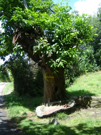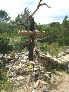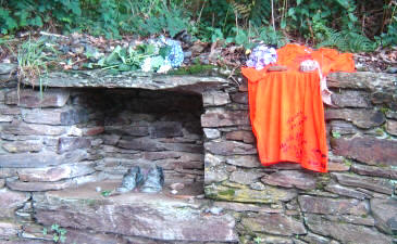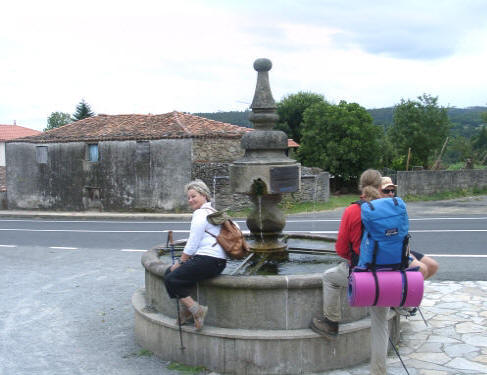 Der kleinen Igrexa de Sta María de Mirallos, die am Camino liegt, hätten wir gerne einen Besuch abgestattet, aber sie ist geschlossen - kein Stempel. Schade. So begnügen wir uns mit einem Besuch des kleinen Kirchhofs und ruhen uns kurz auf dem Brunnen oder Weihwasserbecken in seiner Mitte aus.