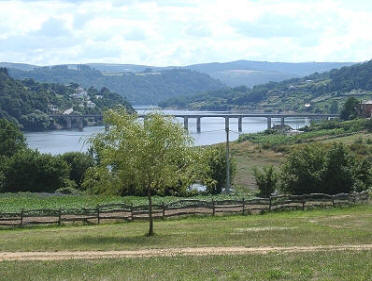Gegen halb vier Uhr erreichen wir die Anhöhe bei Portomarin. Es folgt ein steiler und langer Abstieg hinunter zum Stausee, der meiner bisher von mir so gepriesenen Kondition den Garaus macht. Meine Knie tun weh!!!! Und jetzt merke ich auch, dass meine alten hochverdienten Wanderschuhe, in denen ich seit Jahren problemlos gelaufen bin, mir zu klein geworden sind. Seit ich ein paar Kilo mehr auf die Waage bringe, sind meine Füße wohl etwas in die Breite und Länge gegangen… Sag ich's doch: Ich muss abnehmen! Die Zehen haben vorne zu wenig Platz, und das spürt man bergab besonders. Auaaaa!!!
