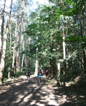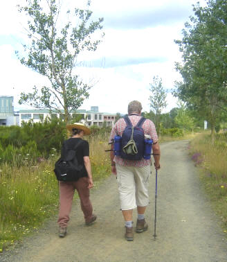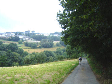 Unsere heutige Pilgerwanderung beginnt mit einem Handicap: Wir müssen erst einmal 1 ½ Kilometer – inklusive eines steilen Anstieges - wandern, um zum Ausgangspunkt der Wanderstrecke zu kommen.