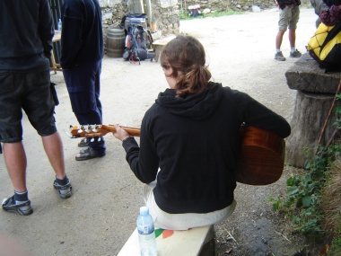 Bei der urigen Albergue Fuente del Pelegrino von Ligonde wird allen Pilgern kostenlos Kaffee angeboten. Der Ort mit seinen alten Natursteinhäusern ist an sich schon ein Erlebnis, aber die Ansammlung von überwiegend jugendlichen Pilgern, die sich dort vor der Herberge tummelt, Erfahrungen austauschend, Gitarre spielend oder einfach nur Kaffee trinkend, gefällt uns besonders. Eine junge Deutsche ist hier die Verantwortliche. Ich bitte sie, den Ring zu nehmen. Vielleicht kommt ja jemand vorbei, der weiß, wem er gehört. Ein deutscher Pilger, der neben mir steht, schaut erstaunt auf unseren Fund: Ich glaub’, der gehört der Martina. Also gebe ich ihm das gute Stück. Jetzt wird er ganz hektisch, er muss sich beeilen, Martina noch einzuholen. Sein Eifer ist fast schon Übereifer. Martina scheint nett zu sein…
