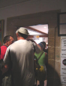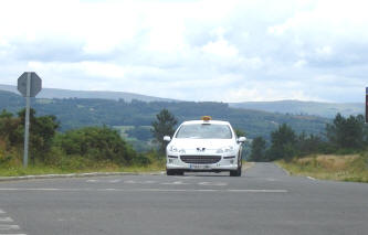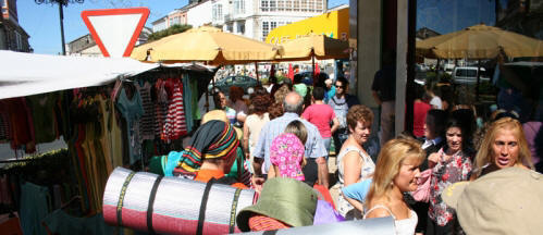 So kurven wir nun mitten durch Santiago zurück auf die Straße, die nach Finisterre führt. Dabei geraten wir - unter die Räuber, hätte ich beinahe gesagt, in den Festtagstrubel der Santiagonesen. Reihen von Festzelten mit gedeckten Tischen, ein Jahrmarkt und Hunderte von chaotisch geparkten PKWs und mitten drin unser Hiram. Aber Günther als erfahrener Truckfahrer kommt wie der Phönix aus der Asche sicher wieder aus dem Getümmel hervor.
