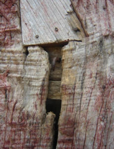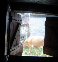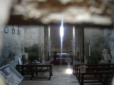 Findig wie ein Paparazzi habe ich doch tatsächlich in dem fest verschlossenen uralten Kirchenportal ein Loch entdeckt, durch das ich zumindest einen kleinen Teil des Kircheninneren fotografieren kann. Es erstaunt mich immer wieder, was so eine Digitalkamera alles kann.