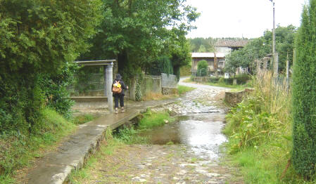 Diese letzte Etappe des Jakobsweges wird auch der Ungeduldige Camino genannt, weil man es kaum erwarten kann, in Santiago anzukommen. In Labacolla, wo sich heute ein Flughafen breit macht, bereiteten sich im Mittelalter die Pilger auf ihr langersehntes Zusammentreffen mit dem Heiligen Jakob vor. Sie entledigten sich all ihrer vermutlich nicht mehr sehr ansehnlichen Kleider und wuschen im Fluss den Schmutz von ihren geplagten Pilgerkörpern ab. Die Zunft der Schneider hatte sicher hier gut zu tun, denn keiner wollte natürlich in abgerissenen Klamotten vor dem Apostel Jakob erscheinen. Wie man in manchen Beschreibungen liest, verdiente auch das waagerechte Gewerbe in den Orten vor Santiago de Compostela nicht schlecht und zog manchem Pilger das letzte bisschen Geld, das ihm noch geblieben war, aus der Tasche. Vielleicht wuschen die Burschen sich auch darum so ausgiebig, schießt es mir misstrauisch durch den Kopf. Mein Misstrauen wächst, als ich lese, dass das galizische Wort „laba“ - wie ich vermutete - „waschen“ heißt, und „colla“ – was ich gar nicht zu vermuten wagte – „Penis“. Aha!!! Möchte man eigentlich in einem Ort wohnen, der so heißt?