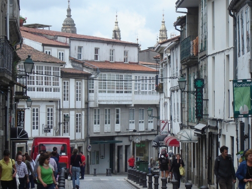 Nachdem wir Geist und Körper ausreichend mit Nahrung versehen haben, sind wir bereit für den „Heimweg“. Unterwegs treffen wir die beiden Berliner, die lange in Endenich gewohnt haben. Ah, da kommt der Mann aus Poppelsdorf, ruft der Mann, als er Günther sieht. Kleiner Plausch unter Pilgern, Abmarsch. Einige Sehenswürdigkeiten liegen allerdings noch an unserem Weg durch die Altstadt von Santiago und haben durchaus unsere Beachtung verdient.