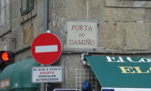 Vom Monte do Gozo ist es dann nicht mehr weit bis in die wenig ansehnlichen Vororte von Santiago. Schließlich gelangt man an ein modernes, gewaltiges Pilgertor, und nach einigen hundert Metern erreicht man schließlich die Altstadt von Santiago mit ihren malerischen Gassen. Gelbe Pfeile sehen wir dann nur noch selten und orientieren uns darum auf dem Stadtplan.