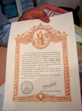 Nachdem die Urkunden ordentlich ausgestellt sind, gratuliert der freundliche Herr uns mit Händedruck und wünscht uns eine gute Weiterreise. Stolz ziehen wir mit unserer Compostela vondannen.