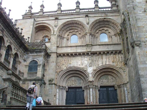 das als einziges Portal in der ursprünglichen Gestalt erhalten bliebDer Platz vor der Kathedrale, die Plaza de Obradoiro gehört zu den beliebtesten spanischen Plätzen überhaupt. Auf diesem riesigen Platz befindet sich der Convento de San Francisco aus dem 13. Jahrhundert, der von Franz von Assisi während seiner Pilgerfahrt nach Santiago de Compostela gegründet wurde.