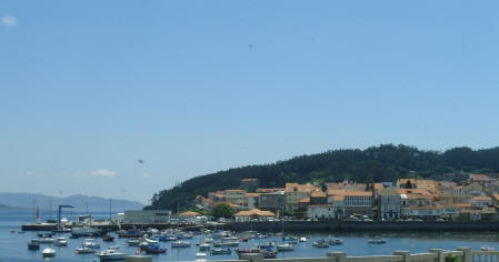 Unsere Fahrt nach Finisterre führt durch eine hüglige Landschaft, die geprägt ist von Eukalyptus- und Pinienwäldern. Die Eukalyptusbäume sehen auch hier teilweise sehr spärlich und krank aus. Es würde mich interessieren, woran das liegt. Am Nachmittag erreichen wir in Corcubión, einem hübschen Hafenstädtchen, das Meer.