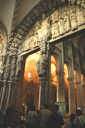 Im Eingang des Westportals (Fachada del Obradoiro) befindet sich das Pórtico de la Gloria des Baumeisters Mateo aus dem Jahr 1188, das als ein architektonisches Meisterwerk gilt.