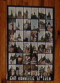 Als wir den Gastraum betreten, staunen Günther und ich nicht schlecht: An zwei Wänden hängt ein Poster aus Bad Honnef, die „Honnefer Spitzen“, Türmchen von Häusern in unserer Heimatstadt. Wie kommen die Honnefer Spitzen nach Masuren, fragen wir uns. Ich habe eine Idee. Unser Frederik hatte einen Deutschlehrer am Gymnasium, der Ostpreußenfan ist. Herr Dietrich, gebürtiger Königsberger, wenn ich mich recht erinnere. Er hat mir mal beim Elternsprechtag erzählt, dass er Kanuto- und Fahrradtouren in Ostpreußen unternimmt. Außerdem organisierte er jahrelang Polentransporte mit Hilfsgütern, die er zeitweilig in unserer alten Fabrik am Saynschen Hof zwischenlagerte. Könnte doch sein, dass er hier war…