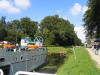 Es ist schon ein Erlebnis der besonderen Art, mit dem Schiff über Land zu fahren. Die Landschaft, die an uns vorüberzieht, ist sehr friedlich und wunderschön, ebenso wie das Wetter – noch. Es ziehen immer mehr Wolken auf und schließlich, etwa nach der Hälfte der Strecke, beginnt es zu regnen. Einige verziehen sich auf das untere Deck, doch Günther und ich harren, unter einem Knirps etwas geschützt, auf unserem Platz mit Panoramablick aus, überwindet, während der „Kormoran“ die letzten beiden Rollebenen überwindet.