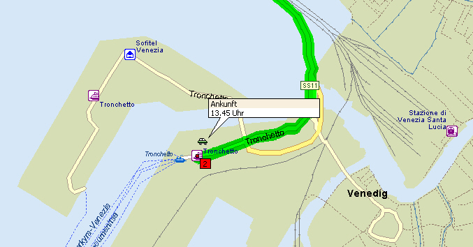 Der Weg vom Hafen ins Zentrum Venedigs ist  nicht so sehr weit, so dass wir uns entscheiden, zu Fuß zu gehen. Man kann aber auch von der Busstation, die unmittelbar am Hafen liegt (s. Karte), mit dem Bus fahren.