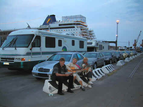 Zurück im Hafen von Venedig, setzen wir uns an die Mole, trinken uns noch eins oder zwei – oder auch drei, singen laut und vor allem schön zur Gitarre und sind ziemlich zufrieden. Einige der umstehenden LKW-Fahrer spenden uns Beifall. Vielleicht sollten wir Pepe mit einem Hut herumschicken, damit wir das teure Abendessen wieder hereinholen?