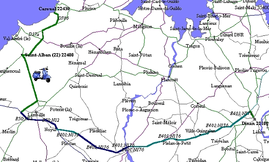 Auch heute hat Hardys Oma, die für unser Wetter zuständig ist, seine Eilnachricht, wie es scheint, noch nicht erhalten. - Der Himmel ist grau, aber es regnet nicht.  Günther und ich wollten eigentlich heute nach Saint Malo fahren, aber da die übrige Truppe nun auch eine Rollertour unternehmen möchte, schließen wir uns an und disponieren um: Wir fahren zur mittelalterlichen Stadt Dinan, die laut Christel mindestens so schön ist wie St-Malo, aber weniger von Touristen überlaufen. Diese Entscheidung ist goldrichtig!!