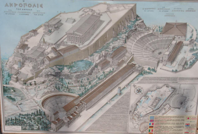 Das alte Athen entstand um die der Sage nach von König Kekrops erbaute Akropolis und dehnte sich in die Ebene aus. Theseus wird die Vereinigung der 12 Städte Attikas zu einem Stadtstaat mit Athen als Hauptstadt zugeschrieben; 800- 400 v. Chr. blühende keramische Industrie, Speiseölexport.