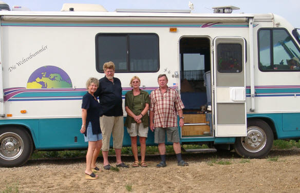 Nun kommt unwiderruflich der Abschied! Ulla und Hardy sind schon früh auf den Beinen und wollen los. Wir liegen noch in den Federn, als es an unserer Türe klopft. Die beiden Unruhegeister sind schon abfahrbereit, und wir stehen ihnen im Weg. So verzichten wir darauf, gleich hier zu frühstücken, gehen unser Gemüse beim Bauern abholen, machen ein letztes Abschiedsbild und fahren dann ein paar Straßen weiter, wo wir auf einem Feldweg in Mutter Grün gemütlich frühstücken.