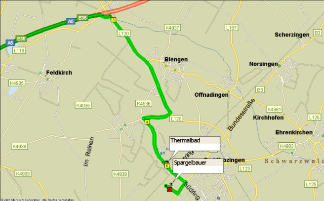 Wie findet man da hin? Von der A5 über die Ausfahrt  64B nach Bad Krozingen abfahren und dann:  siehe Karte.